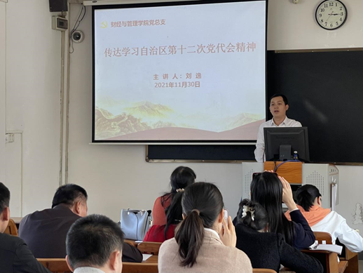 11月30日下午,学院全体党员和教职工举行集体学习会,专题学习自治区第十二次党代会精神。学院党总支书记刘逸主持集体学习会并作领学导学。
