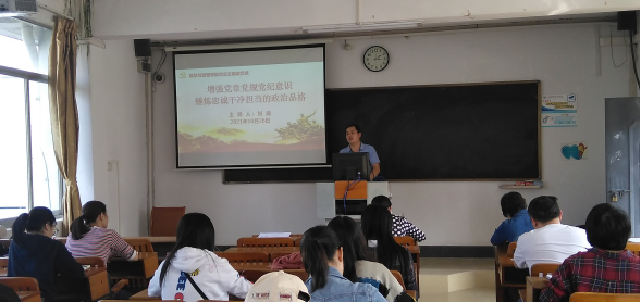 为深入贯彻落实全面从严治党要求,切实履行好党风廉政建设主体责任,进一步严明政治纪律和政治规矩,全面加强学院纪律作风建设,10月26日下午,学院党总支书记刘逸为教工党支部、学生党支部全体党员讲授题为“增强党章党规党纪意识 锤炼忠诚干净担当的政治品格”廉政教育专题党课。