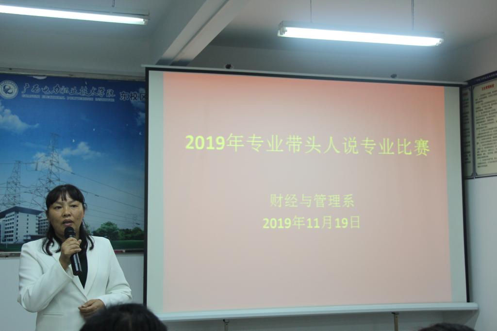 为了理清专业建设思路,加强专业诊改、增强专业团队教师专业建设的能力,促进专业建设更上一个台阶,11月19日下午,在东图一教室,我系举办了2019年专业带头人“说专业”竞赛。本次竞赛,我系五个专业带头人参赛,系部领导以及全体老师出席比赛现场。特别邀请了来自兄弟院校的三位专家:桂林学院南宁分院的詹原教授、广西工商职业技术学院韦胜强教授、广西国际商务职业技术学院曾超副教授,以及我院叶桂中教授和陆春桃教授担任评委。