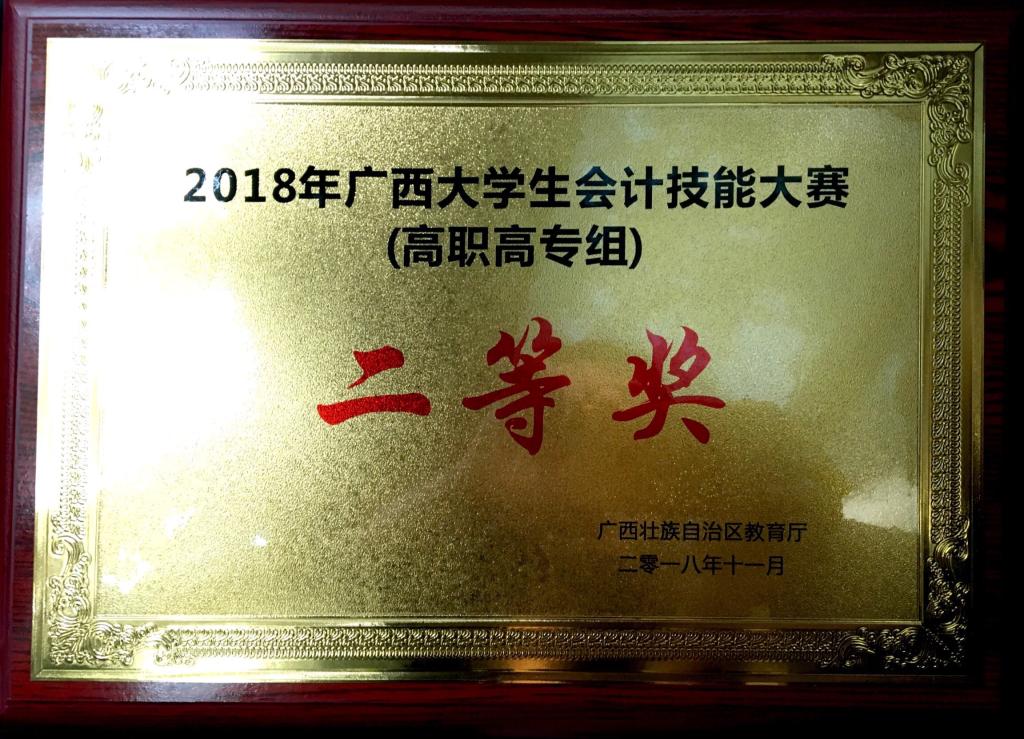 我系会计专业学生参加2018年广西大学生会计技能大赛(高职高专组)喜获第二名,荣获二等奖。