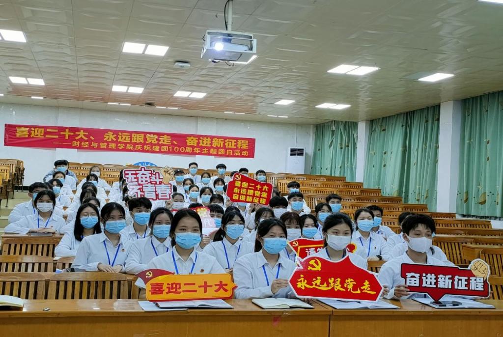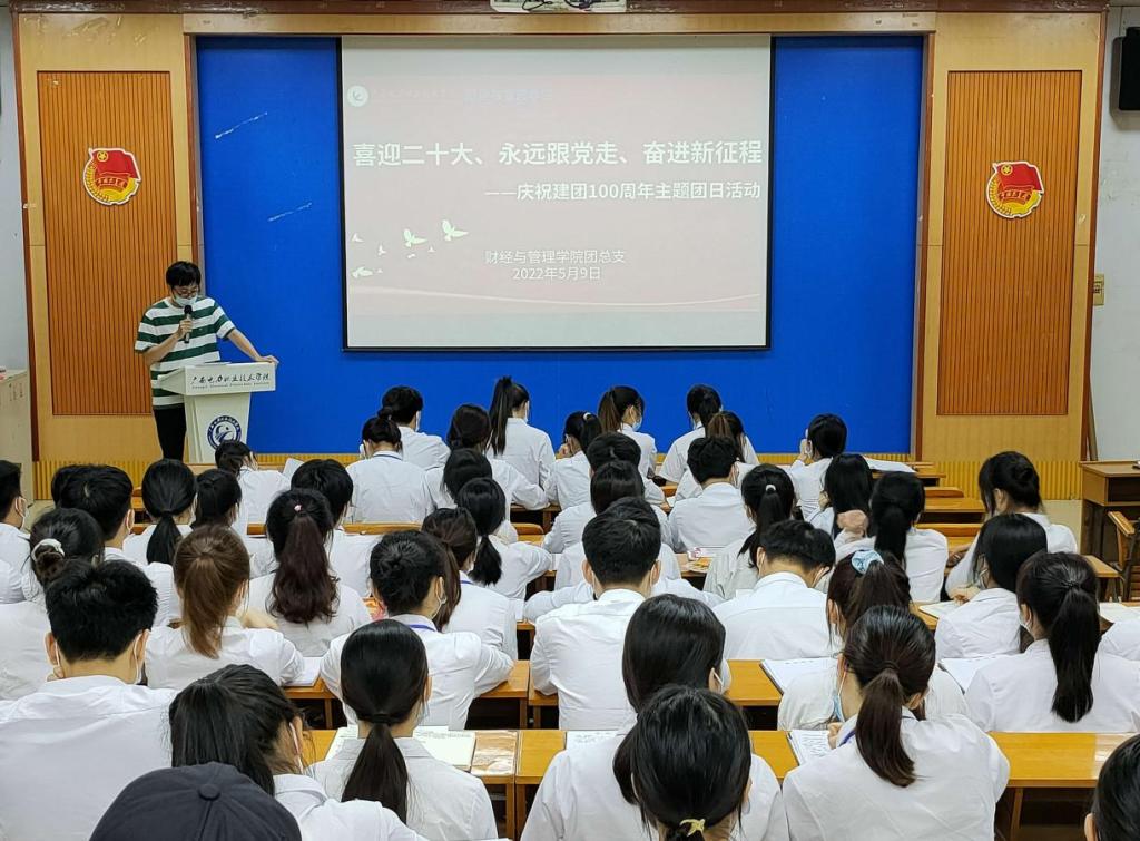 为教育引导广大团员厚植爱党、爱国、爱社会主义的情感,树立远大理想、增强奋斗精神、争当中华民族伟大复兴的生力军,5月9日下午,我院举行“喜迎二十大、永远跟党走、奋进新征程”庆祝建团100周年主题团日活动。本次活动由团总支申惠敏老师主持,我院团总支学生会干部等50余名团学干部代表参加活动。