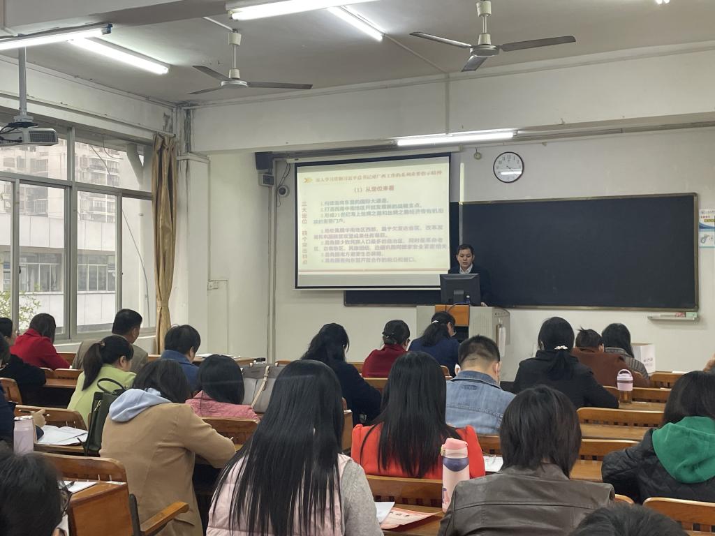 3月28日下午,我院全体党员和教职工举行集体学习会,深入学习习近平总书记对广西工作的系列重要指示精神。学院党总支书记刘逸主持集体学习会并作领学导学。