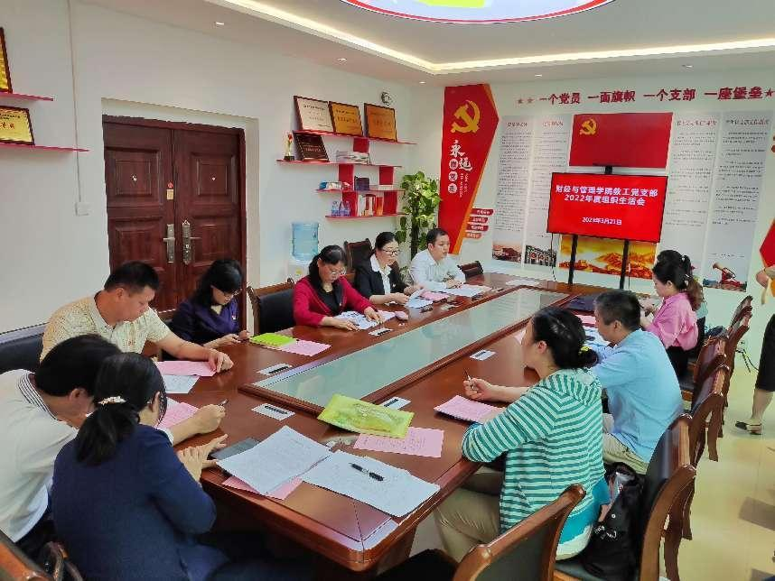 2023年3月21日下午,财经与管理学院教工党支部在1-600教师党员活动室召开2022年度组织生活会,会议由学院教工党支部书记凌雪莹主持。