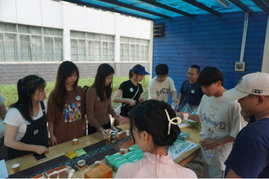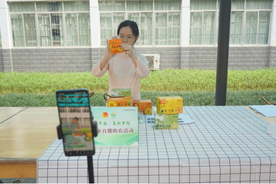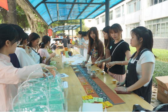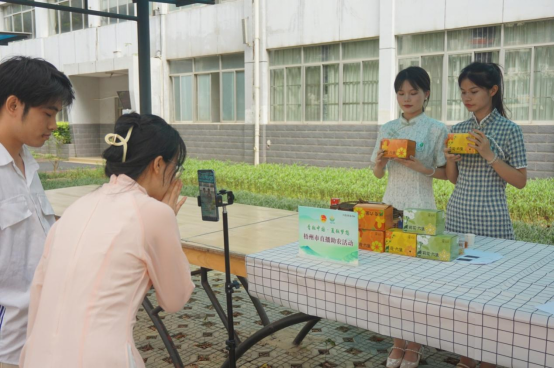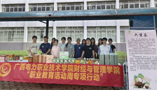 5月23 日下午,“学生企业面对面”活动在科园校区开展。在活动现场,同学们以图片、文字、模型、茶艺展示等方式向师生们介绍非遗六堡茶制作技艺、非遗建筑模型,宣传家乡特产,传播非遗文化。同学们还利用所学直播技能以线上方式对外展销六堡茶叶、六堡茶文创产品、非遗建筑模型、特色米线等商品。