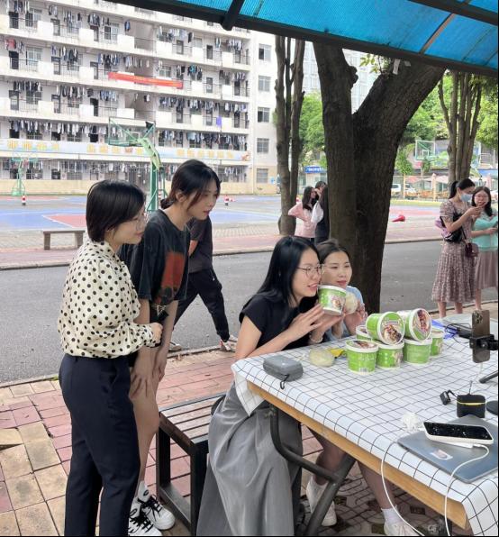 “入口鲜香,纯手工制作鸡汤过桥米线”,跨境电商专业的同学们,将校企合作的直播间搬到室外,招募和吸引更多对直播感兴趣的同学们。财管学院与中国东盟经贸中心打造的“经贸直播间”在短短的半个月内,米线单品已获破万的销售额,体现了学进取生较强的专业素质、积极探索的进取精神。