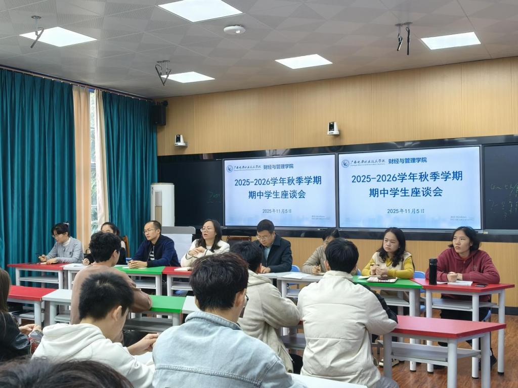 为深化调查研究,贯彻“以学生为中心”理念,提升教育管理服务质效,我院于 11 月 5 日在科园校区 3 实 309 教室召开 2025 - 2026 学年第一学期期中学生座谈会,副院长周旖、江鹏飞、各专业带头人及 34 名学生代表参会。